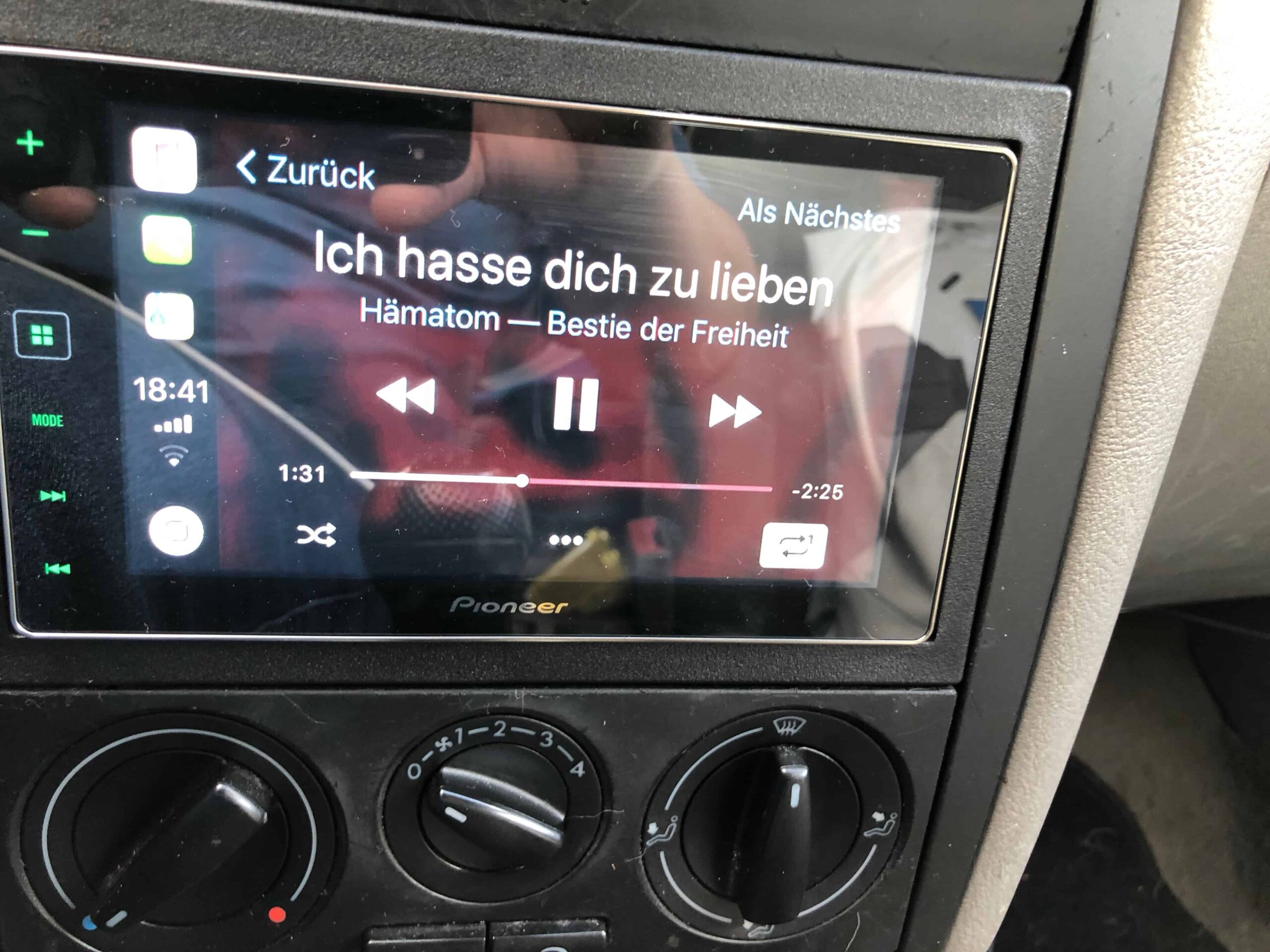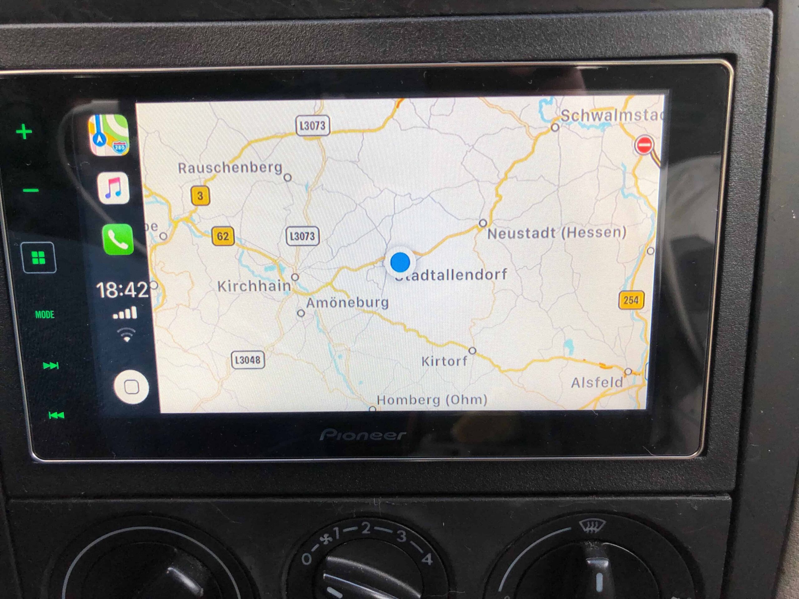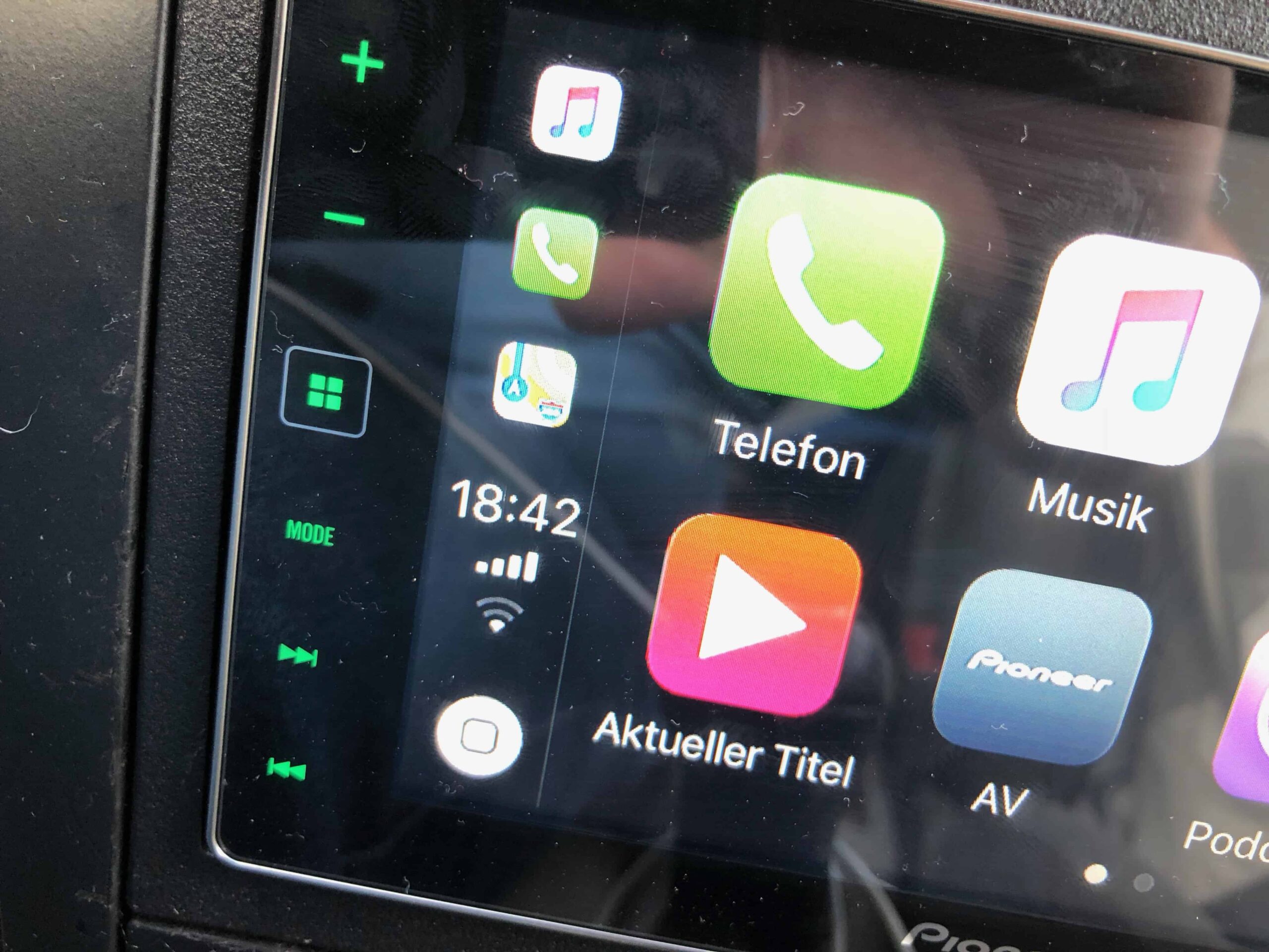 Ich selbst habe mich dann für das Pioneer SPH-DA120 entschieden, da es das beste in der Kategorie „Super Preis-/Leistungs-Verhältnis“ war. Das 6,2″ Zoll Display macht die Bedienung einfach, auch wenn bereits 7″ Zoll Geräte existieren. Ich wollte mir zwar auch erst ein Radio mit einem 7″ Zoll großem Display zulegen, aber das SPH-DA120 hatte einen entscheidenen Vorteil: Die Touch-Technologie welche hier zum Einsatz kommt, ist kapazitives touch. Das bedeutet: Die Bedienung fühlt sich so an wie auf euerm Smartphone. Das Display reagiert auf Berührungen und nicht auf Druck – Das ist leider die am häufigsten Verwendete Technologie in den ganzen Autoradios sofern man nicht tief in die Tasche greift, von daher war das SPH-DA120 durchaus die richtige Wahl, wenn wir uns den Preis von unter 300 Euro einmal genauer betrachten. Der einzige Nachteil ist, dass das iPhone mit einem Kabel verbunden werden muss, allerdings ist dies fast überall der Fall. Ein Radio mit der Unterstützung für drahtloses CarPlay existiert zwar, ist aber extrem teuer.. beinnahe vierstellig.